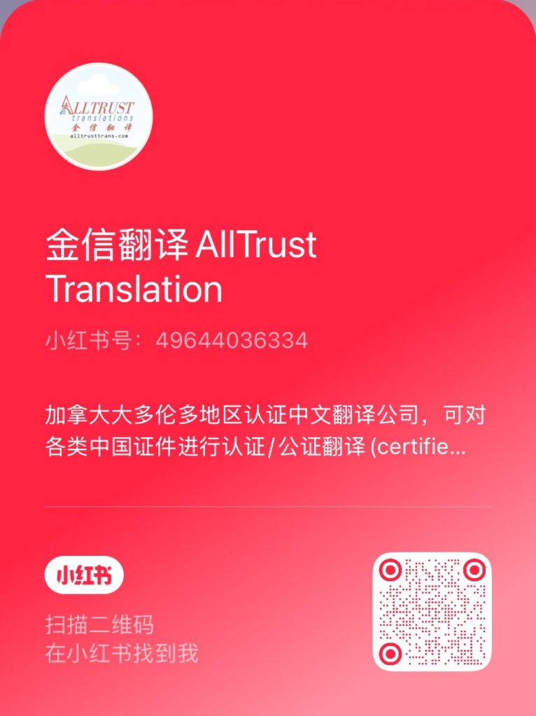 小红书频道—金信翻译AllTrust Translations (小红书ID 为49644036334)